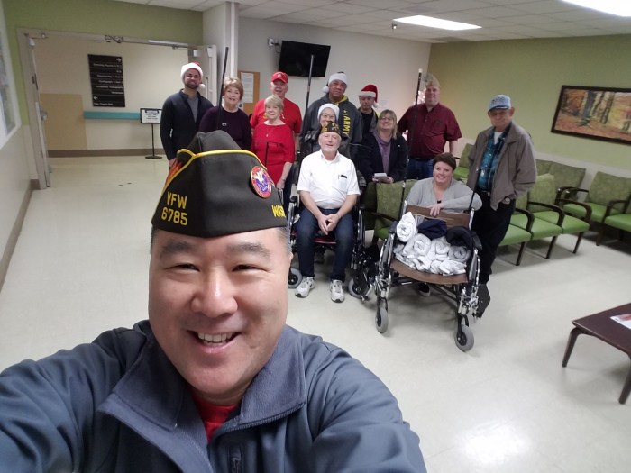 Merry Christmas! Members of VFW Post 6785 spent Christmas morning passing out Christmas gifts and visiting hospitalized veterans at the Seattle VA hospital.