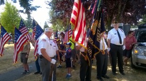 The Color Guard and Honors Formations Chair coordinates other Flag ceremonies and parade activities for other events involving post members. Examples are: Memorial Day and Veterans Day Ceremonies at Tahoma National Cemetery; and parades, such as Kent Cornucopia Days and the Auburn Veterans Day Parade. Other events have included presentation of colors at Emerald Downs, participating in the Washington Patriotic Day ceremony, and showing typical color ceremonies for Scout units.